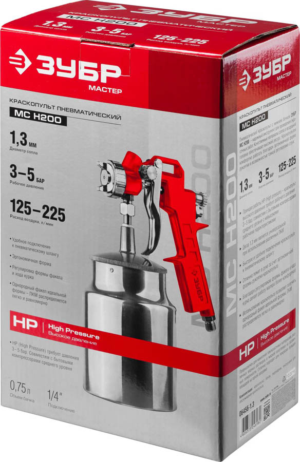 Краскопульт пневматический ЗУБР "МАСТЕР" "МС Н200", с нижним бачком, 1,3мм
