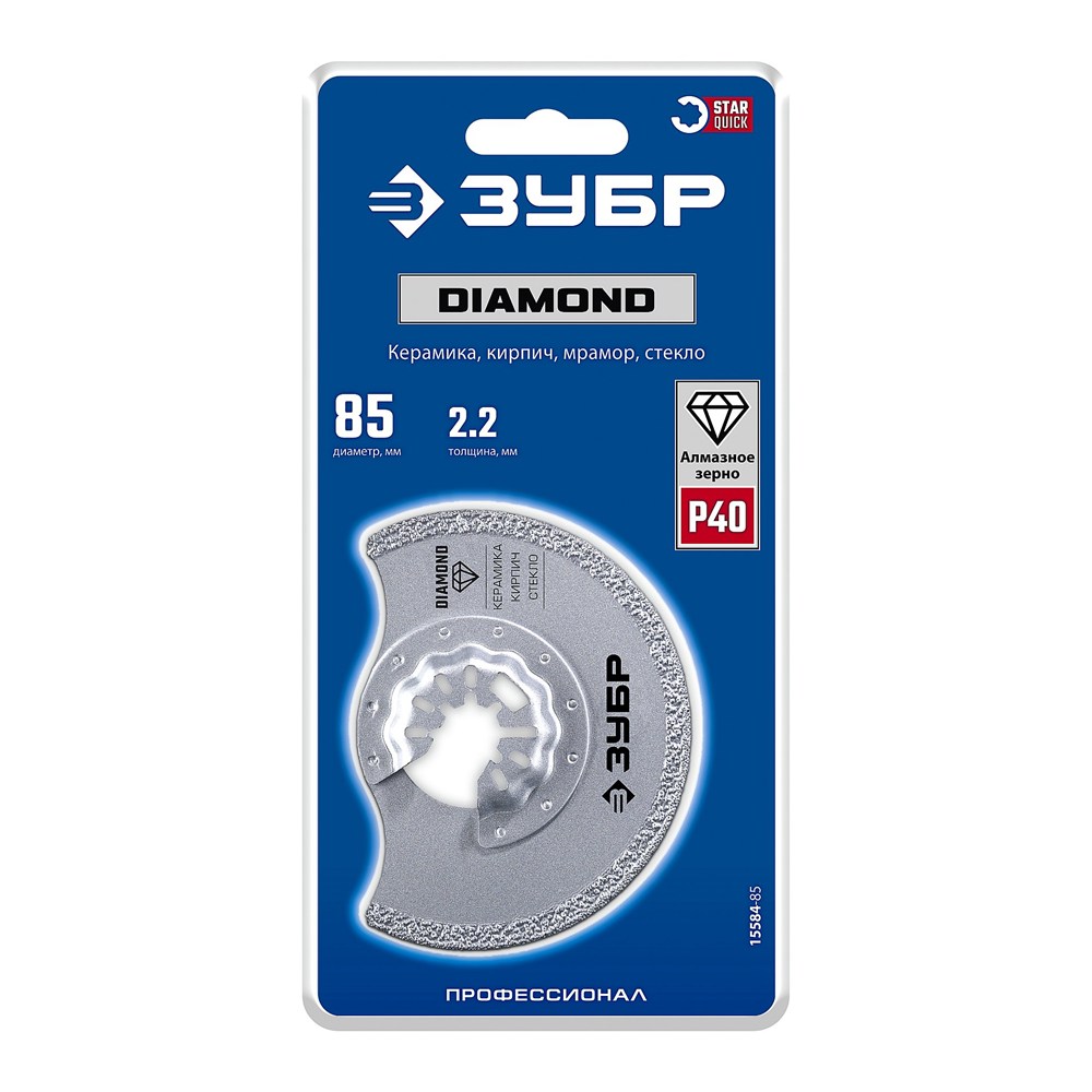 ЗУБР DIAMOND 85x2.2 мм полотно дисковое с алмазным зерном Р40: керамика, мрамор, стекло, кирпич (15584-85)