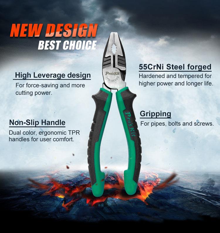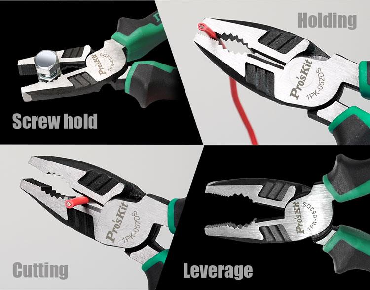 Плоскогубцы ProsKit 1PK-052DS обладают высоким передаточным отношением, что упрощает работу с проволокой и листовым металлом. Изделие способно резать медь до 3 мм и сталь до 2.2 мм.
