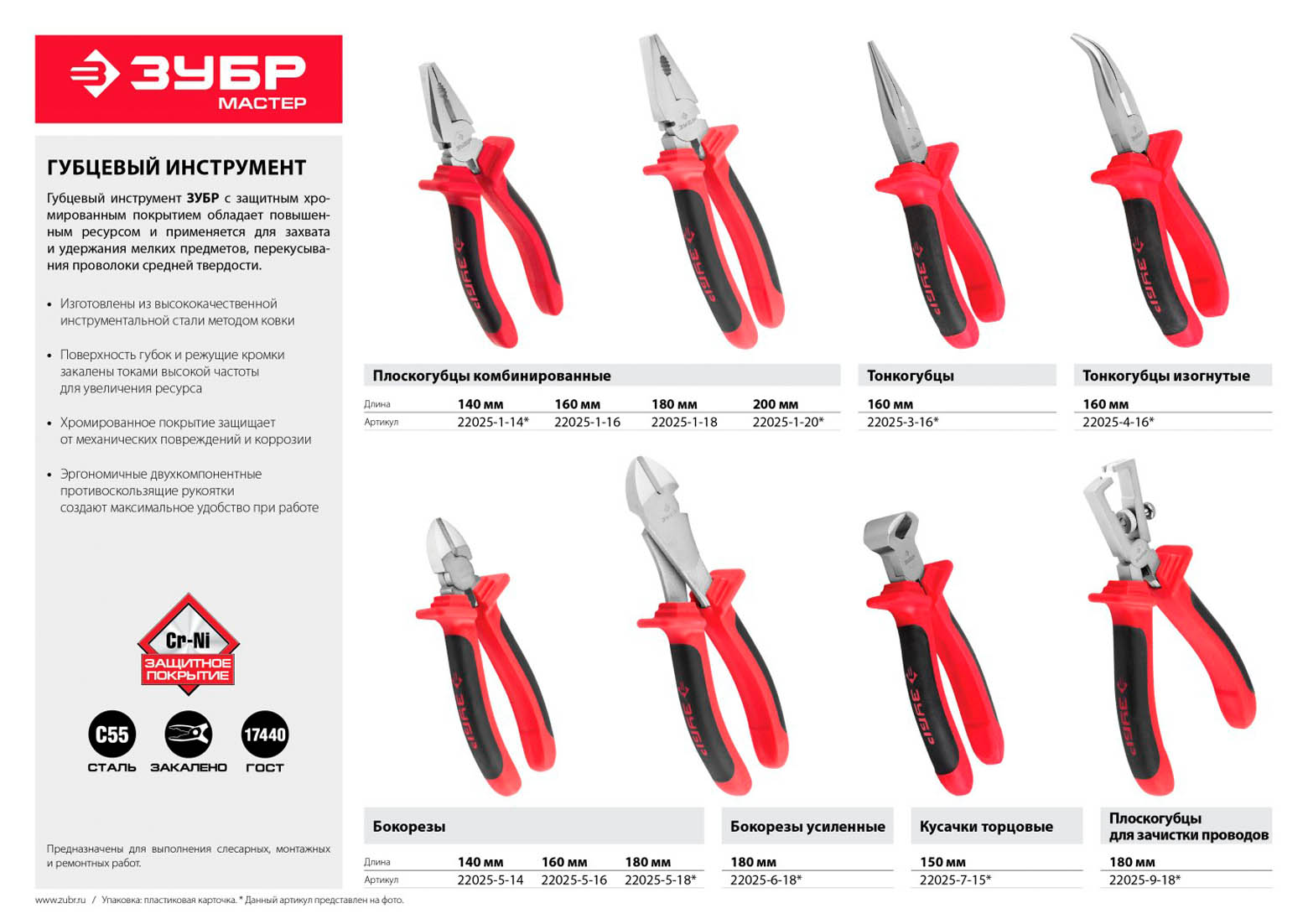 Бокорезы ЗУБР 22025-5-16, предназначены для захвата и удерживания мелких предметов, перекусывания проволоки средней твердости. Изготовлены из высококачественной инструментальной стали методом ковки. Поверхность губок и режущие кромки закалены токами высокой частоты для увеличения ресурса. Хромированное покрытие защищает от механических повреждений и коррозии. Эргономичные двухкомпонентные противоскользящие рукоятки создают максимальное удобство при работе.