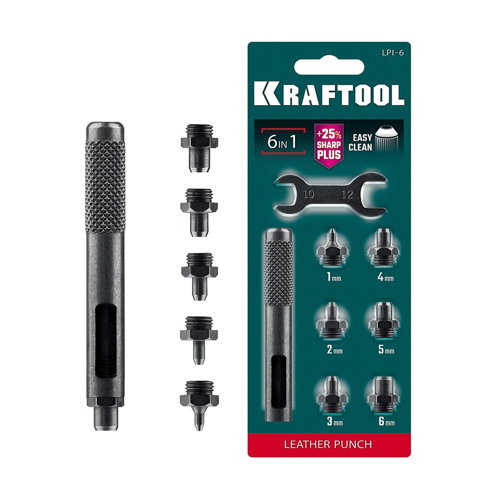 KRAFTOOL LPI-6 с набором насадок 1-6 мм, ударный пробойник для кожи (22951)