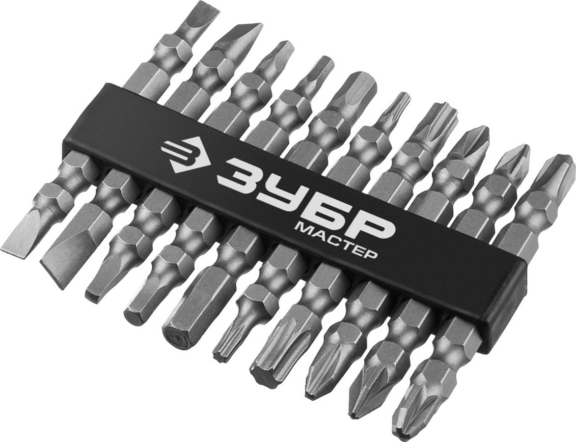ЗУБР двусторонние для шуруповерта в держателе, набор: биты длинные "МХ-10" 26089-H10