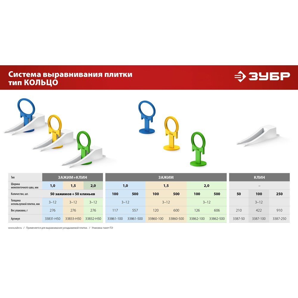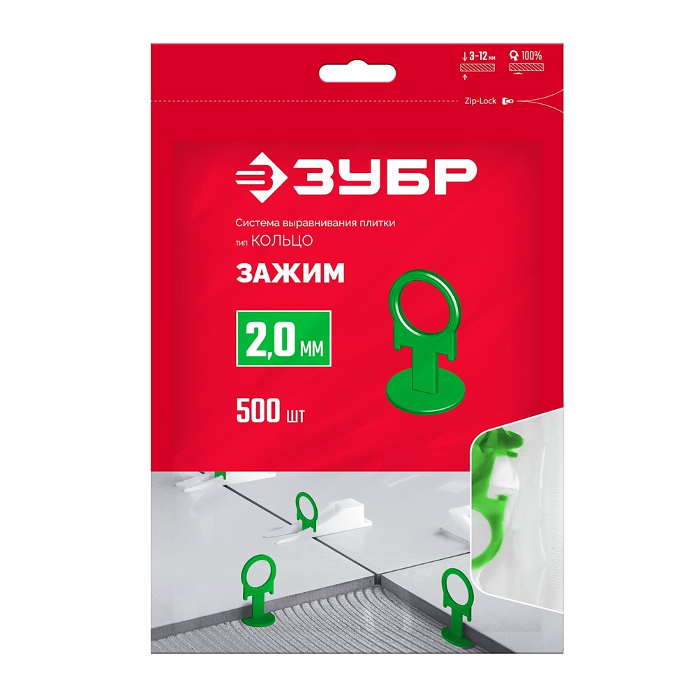 Система выравнивания плитки КОЛЬЦО, 2,0 мм, зажим, 500 шт (33862-500)
