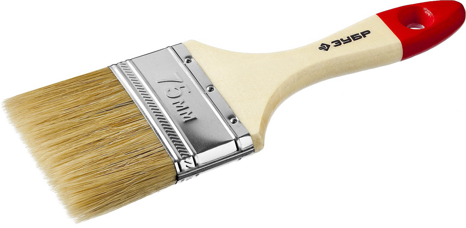 Кисть плоская ЗУБР "УНИВЕРСАЛ-МАСТЕР", натуральная щетина, деревянная ручка, 75мм