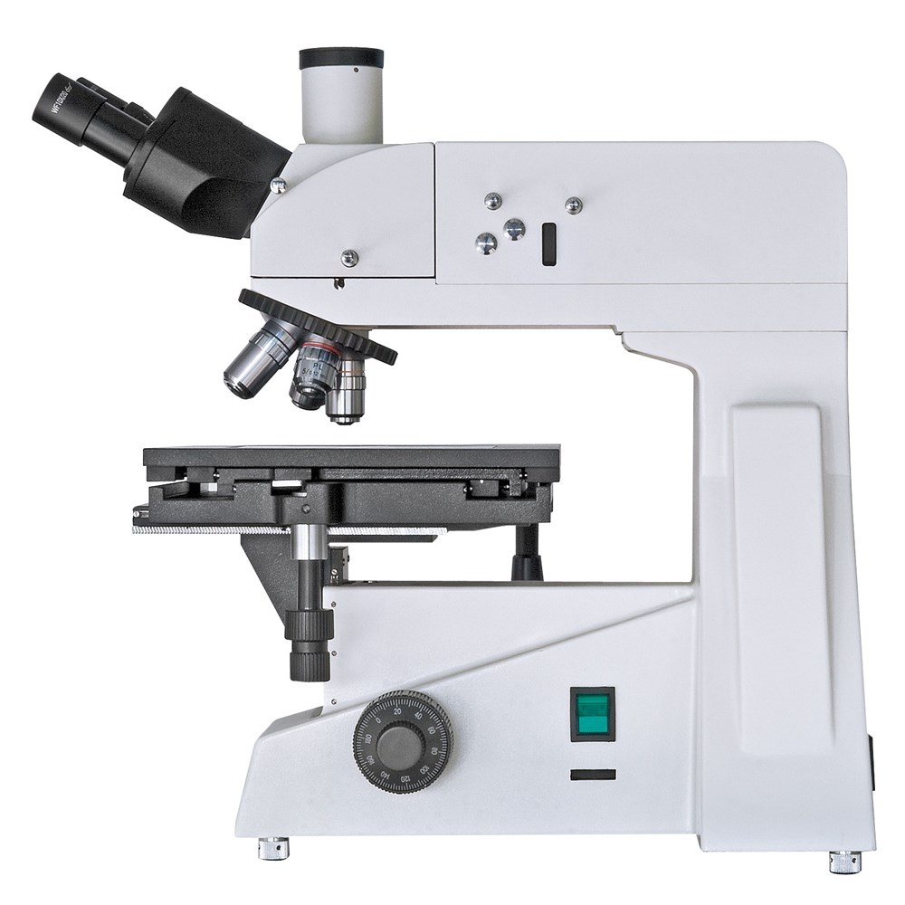 Тринокулярная насадка Большой предметный столик 250х230 мм Коаксиальные ручки грубой и точной фокусировки Мощная галогенная подсветка Полевая диафрагма и фильтры в комплекте Поляризатор/анализатор Планахроматические объективы 5-гнездная револьверная головка Регулируемое межзрачковое расстояние Диоптрийная коррекция окуляровКомплектация: