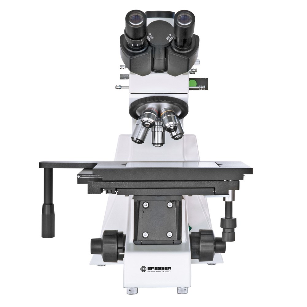 Микроскоп Bresser Science MTL-201 – это профессиональный металлографический (металлургический) микроскоп, позволяющий изучать непрозрачные объекты на больших увеличениях (50-800 крат). Такой микроскоп станет верным помощником в минералогических и точных инженерных исследованиях, а также в электронике. Микроскоп оборудован большим удобным предметным столиком (250x230 мм), положение которого регулируется по обеим осям. Ручки грубой и точной (70 мкм за оборот) фокусировки расположены коаксиально. Осветитель представляет собой галогенную лампу регулируемой яркости. Микроскоп оснащен также полевой центрируемой диафрагмой, набором светофильтров и комбинацией поляризатора и анализатора. В комплект входят 5 планахроматических объективов, которые дают увеличения в диапазоне от 50 до 800 крат. 5-гнездное револьверное устройство позволяет оперативно выбирать нужное увеличение, не отрываясь от работы. Тринокулярная насадка обеспечивает удобную работу с микроскопом и возможность фиксировать результаты исследований (требуется подключение камеры, в комплект не входят).