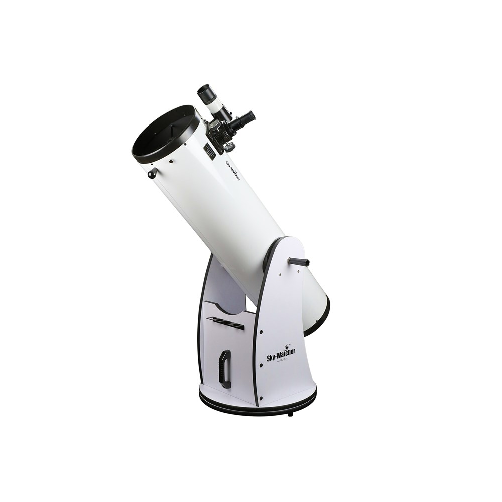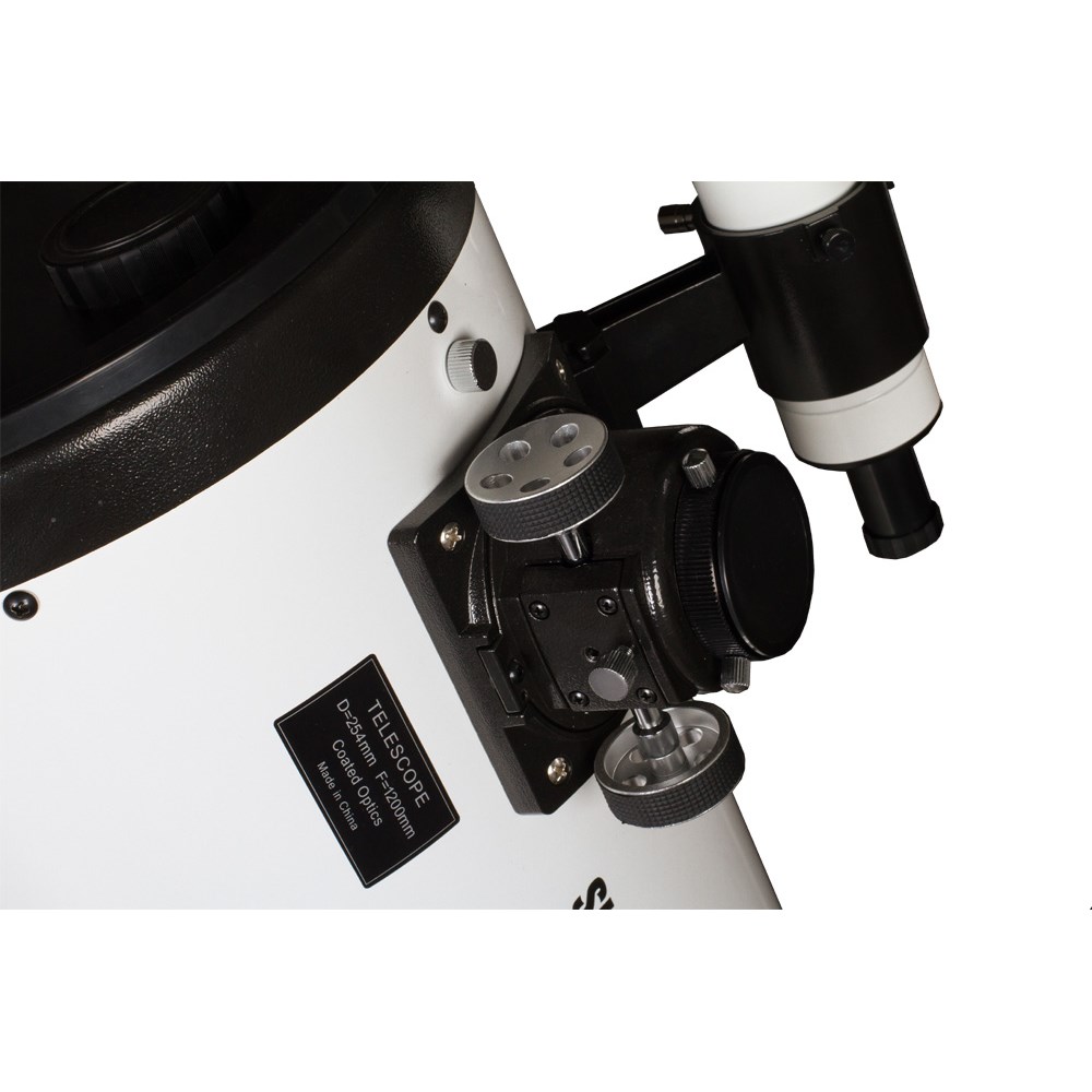 Рефлектор Ньютона. Диаметр главного зеркала: 254 мм. Фокусное расстояние: 1200 мм. Sky-Watcher Dob 10" (250/1200) – это мощный зеркальный телескоп с апертурой 250 мм. Данная модель прекрасно подходит для загородных наблюдений. С помощью этого телескопа вы сможете увидеть множество далеких звезд, туманностей и галактик. Оптическая труба устанавливается на азимутальную монтировку Добсона. Параболическое главное зеркало изготовлено из стекла Pyrex с низким коэффициентом теплового расширения. Поверхность зеркала держит форму даже при резких перепадах температур. Вторичное зеркало закреплено при помощи тонких растяжек. Для наведения на объекты используется оптический искатель. Фокусер Крейфорда обеспечивает точную настройку резкости. Телескоп комплектуется двумя окулярами с фокусным расстоянием 25 мм и 10 мм. Монтировка Добсона проста в сборке и подходит для начинающих астрономов.
