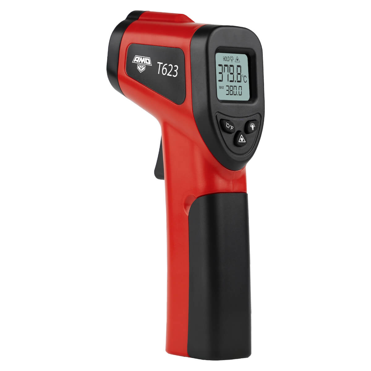 Пирометр AMO T623 представляет собой мобильный прибор технического класса с рабочим диапазоном от –50 до +380°С и разрешением в 0,1°С, предназначенный для дистанционного определения температуры поверхностей выбранных целей – узлов и компонентов механического и электросилового оборудования, конструкционных элементов сооружений и систем различного типа. Результаты измерений могут отображаться в градусах Цельсия или Фаренгейта, с возможностью быстрого переключения показаний путем нажатия соответствующей кнопки. Изделие обладает показателем визирования 1:12 и подходит для оперативной диагностики целевых объектов и дистанционного контроля соблюдения технологических процессов в промышленных отраслях, на объектах ЖКХ, а также для решения бытовых задач.