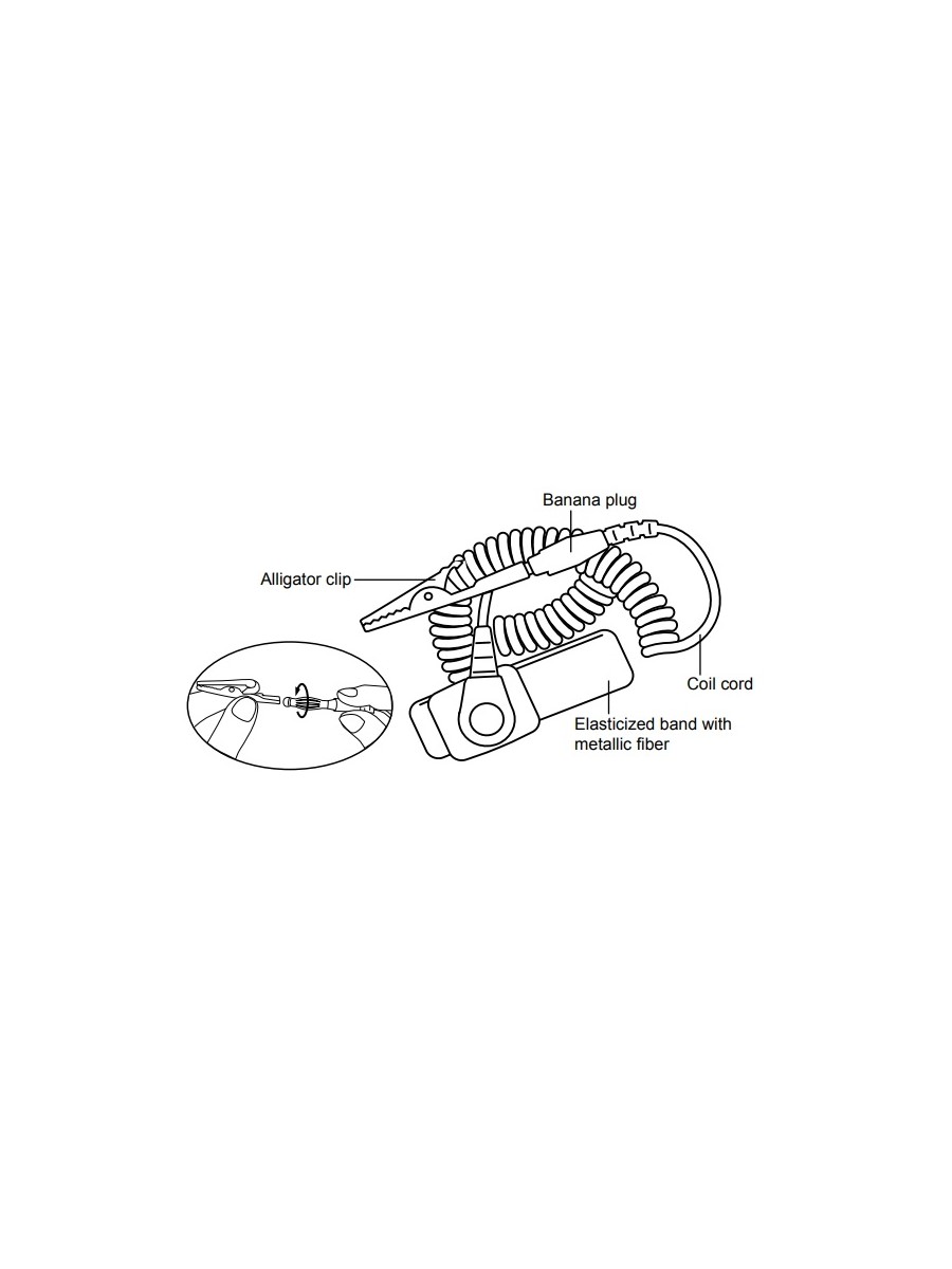 Рассеивает статическое электричество с тела человека до того, как статическое электричество может повредить устройству, с которыми вы работаете.