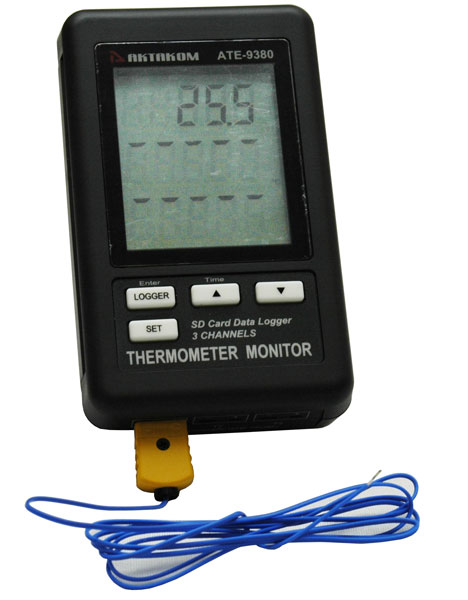 Измеритель-регистратор температуры АТЕ-9380 предназначен для измерения и регистрации температуры по 3-м каналам одновременно при помощи термопар K-типа. Данный прибор совместно с преобразователем интерфейсов Актаком АСЕ-1025 и программным обеспечением AKTAKOM Data Logger Monitor или Aktakom ATE Easy Monitor на ПК реализует автоматизированные измерения температуры и разнообразную математическую обработку результатов измерений. В измерителе-регистраторе АТЕ-9380 имеется возможность сохранения измеренных данных на SD-карту в формате Excel в режиме реального времени без!!! использования специального программного обеспечения.