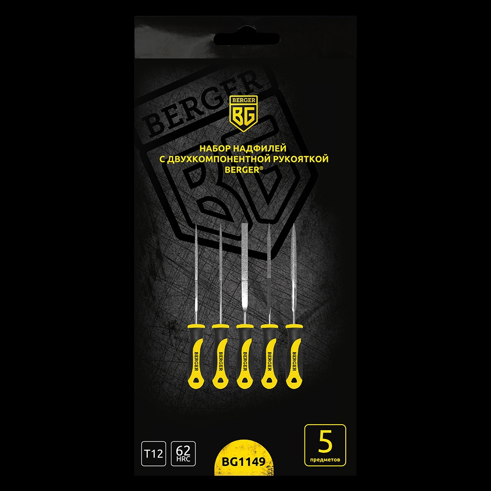 Набор надфилей с двухкомпонентной ручкой 5 предметов Berger BG1149