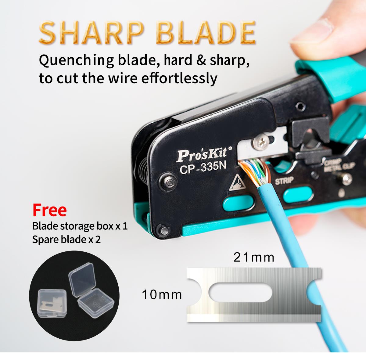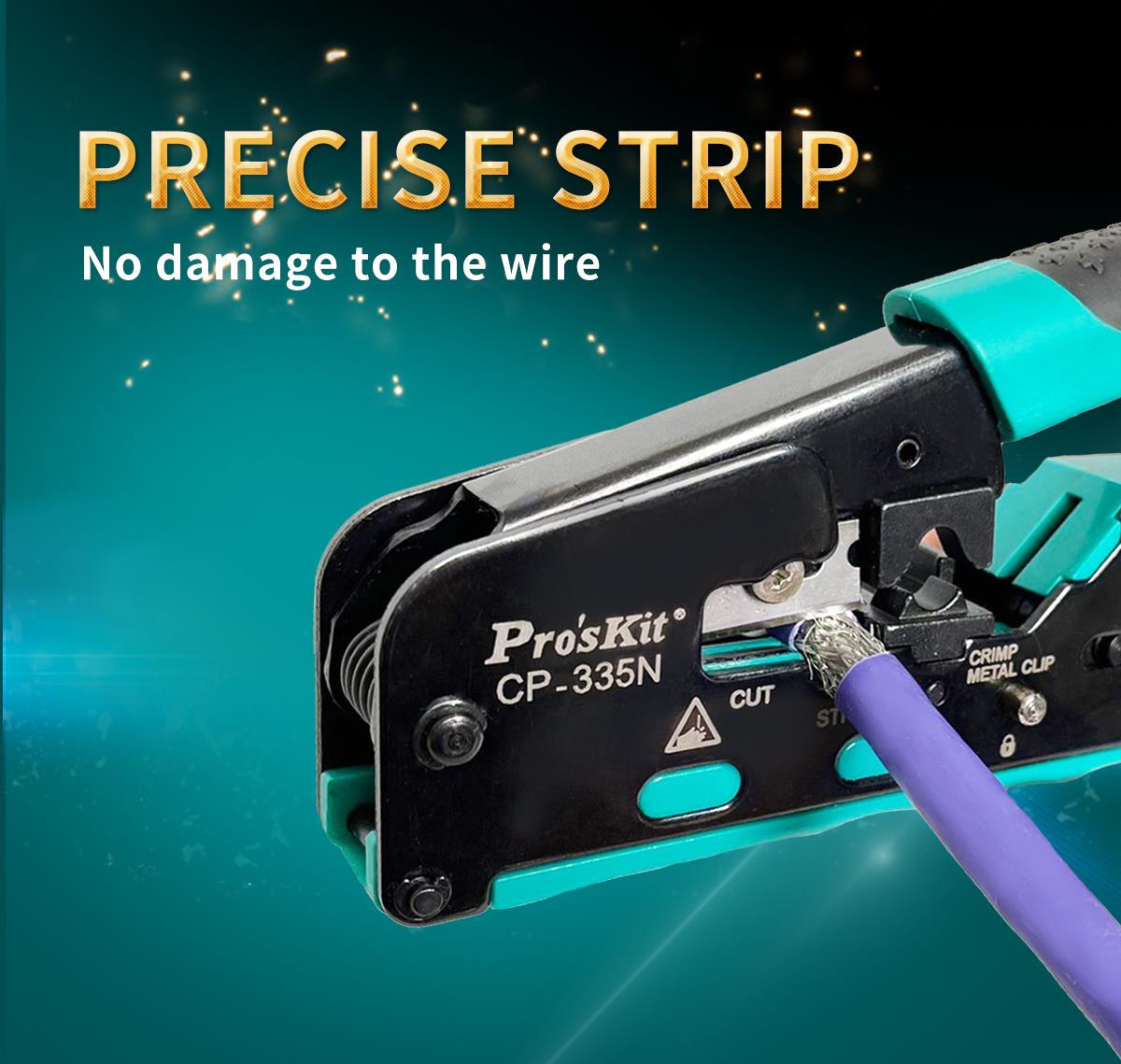 Pro’sKit CP-335N – это компактный модульный кримпер 3-в-1 для точной резки, зачистки и обжима сетевых коннекторов CAT 5/6/7. Инструмент имеет надежную прочную конструкцию механизма с параллельным ходом обжимных губок, что позволяет сэкономить время и усилия, необходимые для обжима коннекторов. Конструкция оснащена регулировочным винтом для легкой и быстрой замены коннекторов CAT 5/6 и CAT 7.