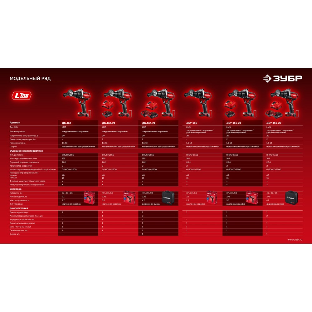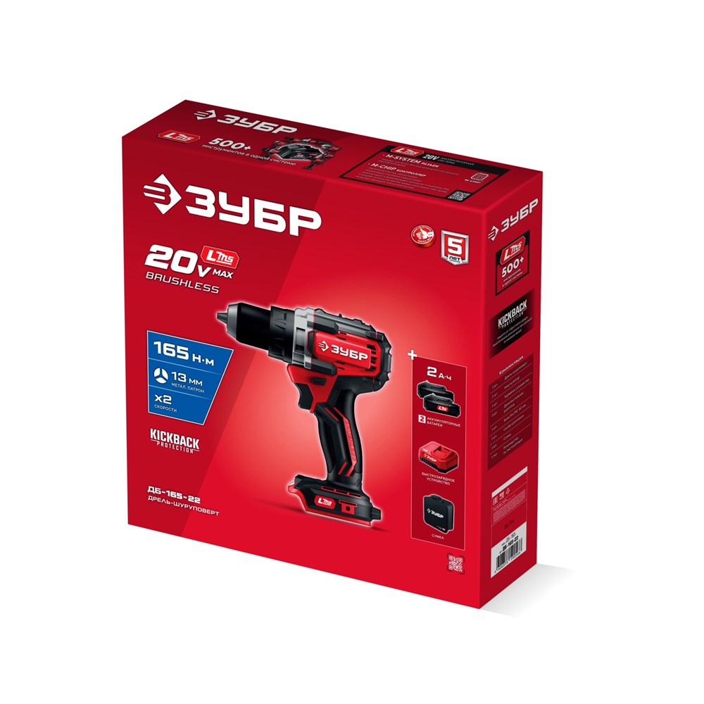 Бесщеточная дрель-шуруповерт, 20 В, 165 Н·м, 2 АКБ LMS (2 А·ч), сумка (ДБ-165-22)