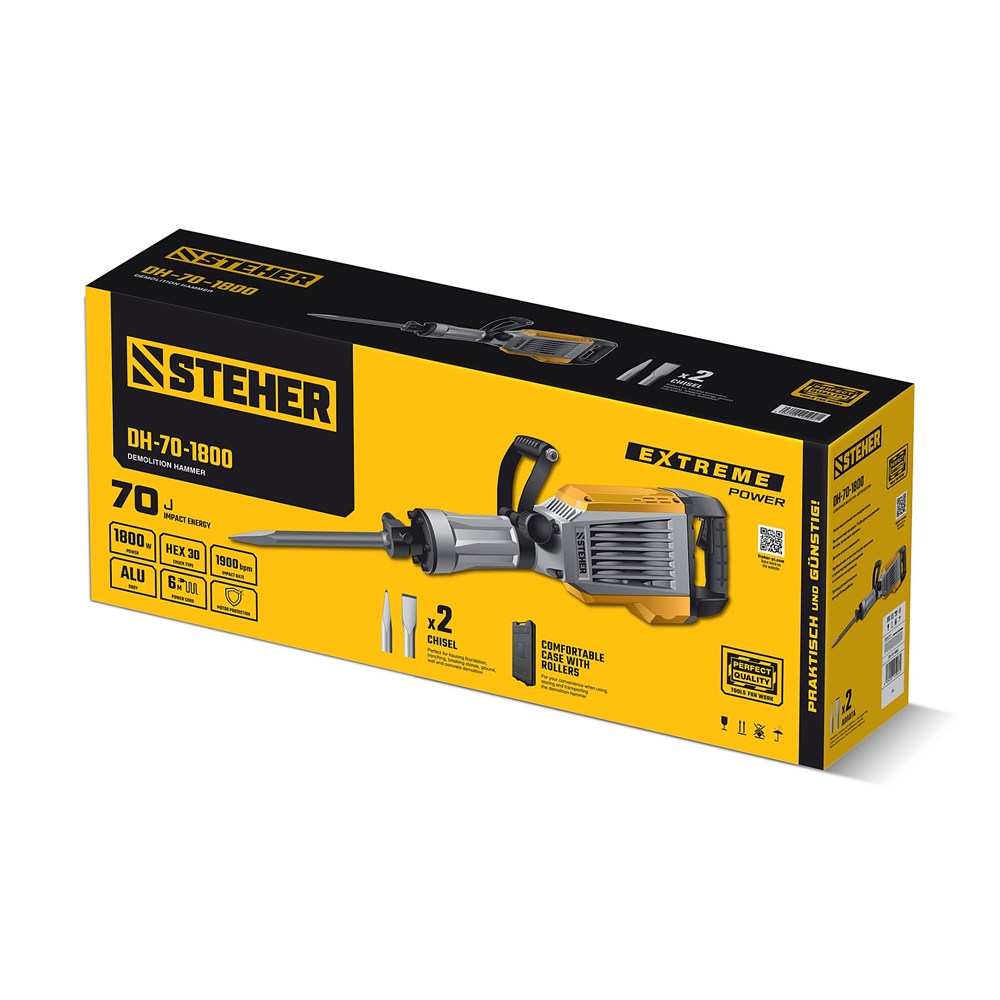 STEHER Бетонолом, 70 Дж, 1800 Вт, отбойный молоток HEX-30 (DH-70-1800)