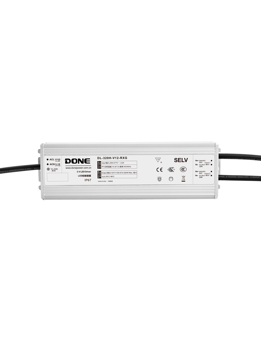 Водонепроницаемый источник питания постоянного напряжения серии RXG-H со степенью защиты IP67 работает в диапазоне входного напряжения 176–305 В переменного тока. Он подходит для использования в относительно суровых условиях, таких как наружное ландшафтное и архитектурное освещение.