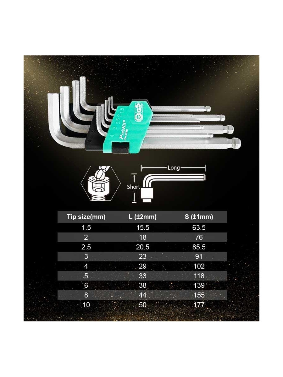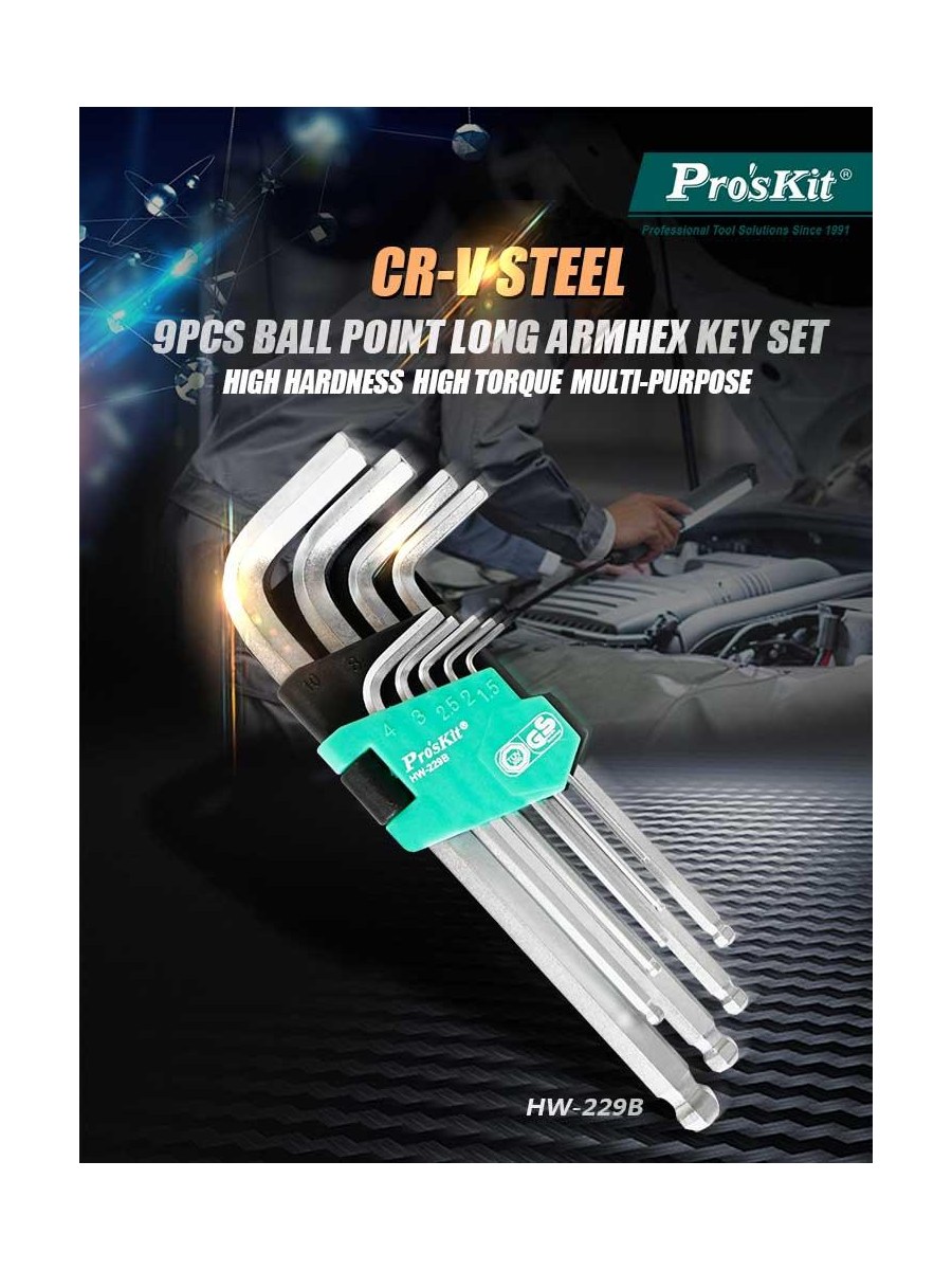 Набор ключей-шестигранников (9шт., шарик) Pro'sKit HW-229B