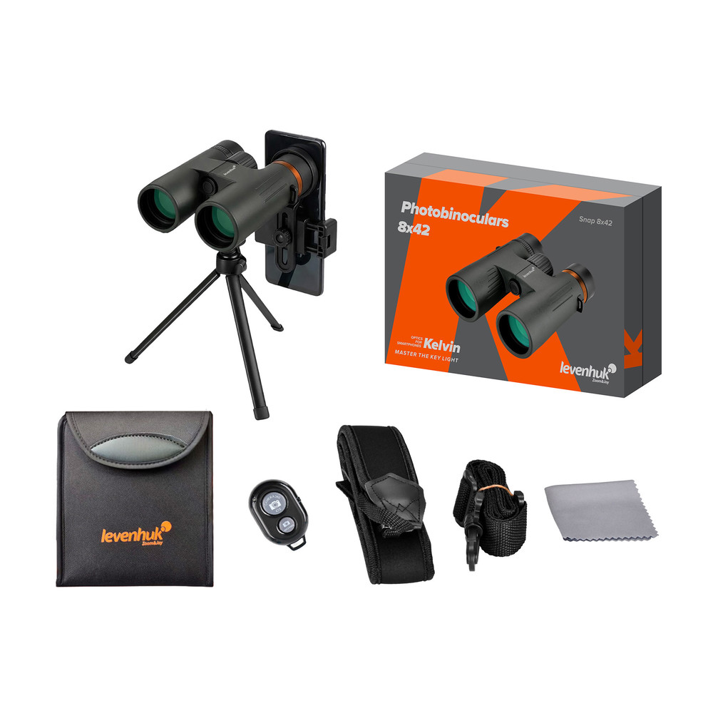 С фотобиноклем Levenhuk Kelvin Snap 8x42 смартфон превращается в камеру с телеобъективом. Снимайте захватывающие кадры с реальным оптическим увеличением 8 крат и мгновенно делитесь ими с друзьями!