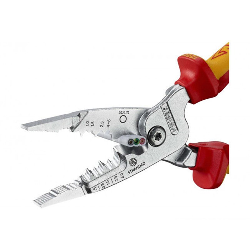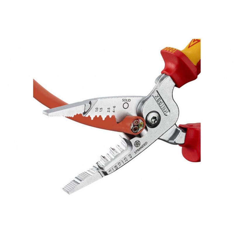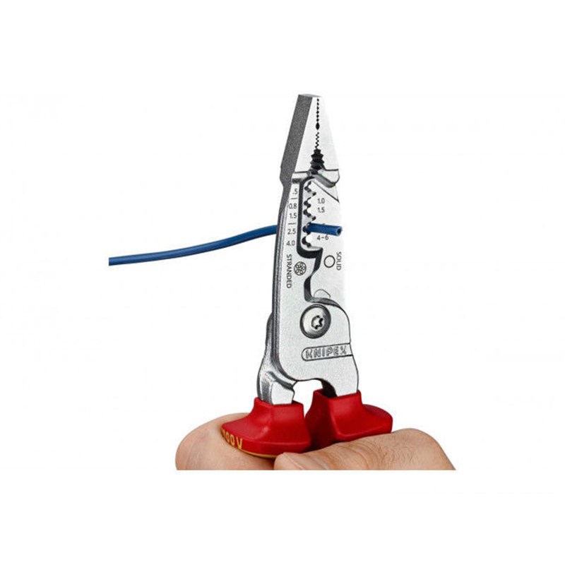 Клещи электромонтажные, 5-в-1, зачистка: 0.75 – 4 / 6 мм², рез: Ø 15 мм / 50 мм², 200 мм, хром, 2-комп диэлектрические ручки, SB