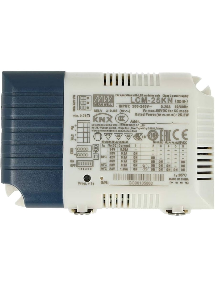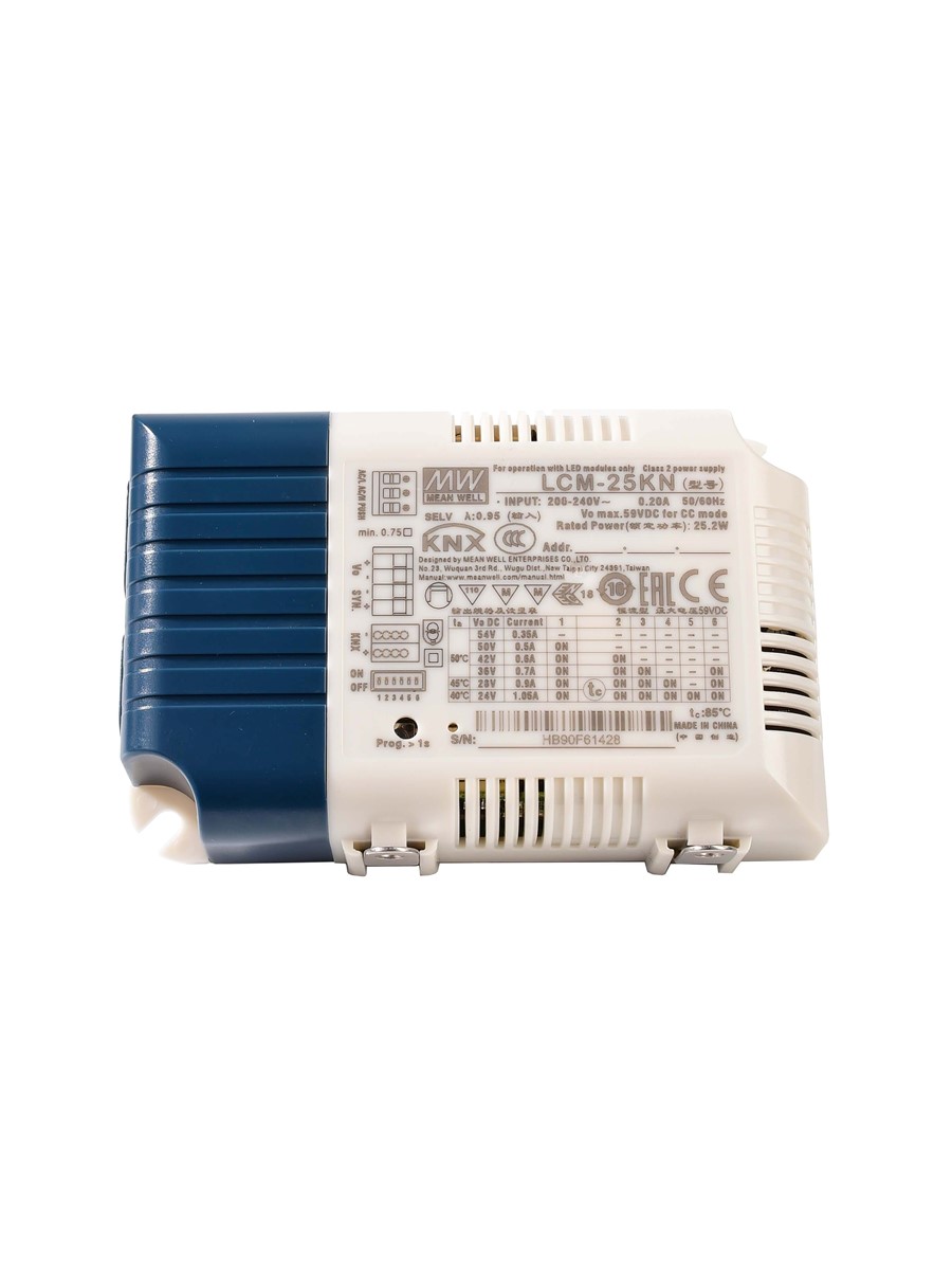 AC-DC, 25Вт, стабилизатор тока, вход 180…277В AC, 47…63Гц /220…392В DC, выход 350…1050мA/6…54В, ККМ, изоляция 3750В AC, в кожухе 105х68х23мм, -30…+60°С, KNX