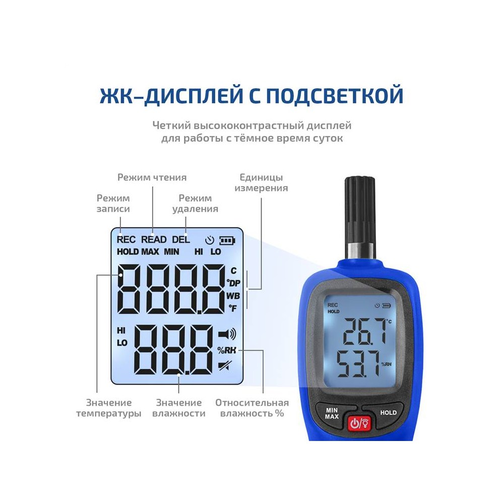 МЕГЕОН 20066 – новинка в модельном ряду цифровых высокочувствительных термогигрометров. Представленный прибор внесён в ГРСИ по номером 89786-23 и предназначен для быстрого определения параметров температуры и влажности с высокой точностью в помещениях и на открытом пространстве. Помимо этого с его помощью можно зафиксировать максимальные и минимальные значения измеренных данных. Преимуществом также является функция записи результатов в память ёмкостью 999 ячеек. Измеритель получил современный дизайн и компактные размеры. Модель имеет эргономичную форму корпуса, удобное расположение органов управления на передней панели и большой ЖК- дисплей с яркой светодиодной подсветкой. На задней стенке предусмотрено монтажное отверстие для установки на штатив, благодаря чему достигается максимальное удобство при эксплуатации.