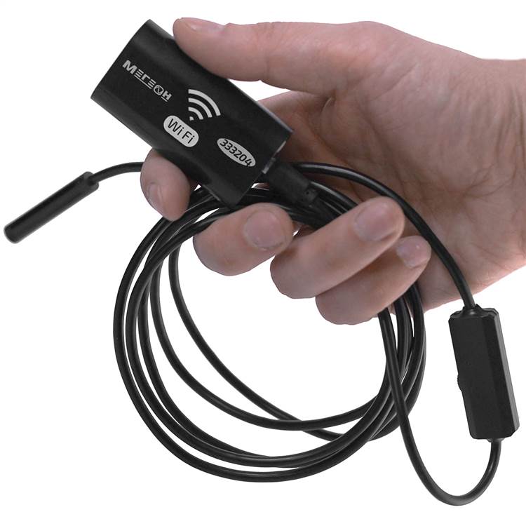 МЕГЕОН 333204 - это видеоскоп с беспроводной передачей данных при помощи Wi-Fi. Прибор удобен своей возможностью работать с большим количеством мобильных средств связи. Теперь размер изображения зависит только от диагонали экрана личного смартфона или планшета. Программное обеспечение позволяет эксплуатировать совместно с операционными системами на базе Android, IOS и Windows. Необходимое приложение доступно для скачивания без ограничения в Play Market, APP Store и на сайте компании. Для работы с персональным компьютером требуется обязательное наличие функции Wi-Fi. Передатчик эндоскопа обеспечивает связь устройств на расстоянии от 5 до 30 метров. Видеонаблюдение обеспечивается пыле- влагозащищённой камерой диаметром 8 мм. Яркая светодиодная подсветка высокой интенсивности гарантирует прекрасную видимость в полном отсутствии освещения.
