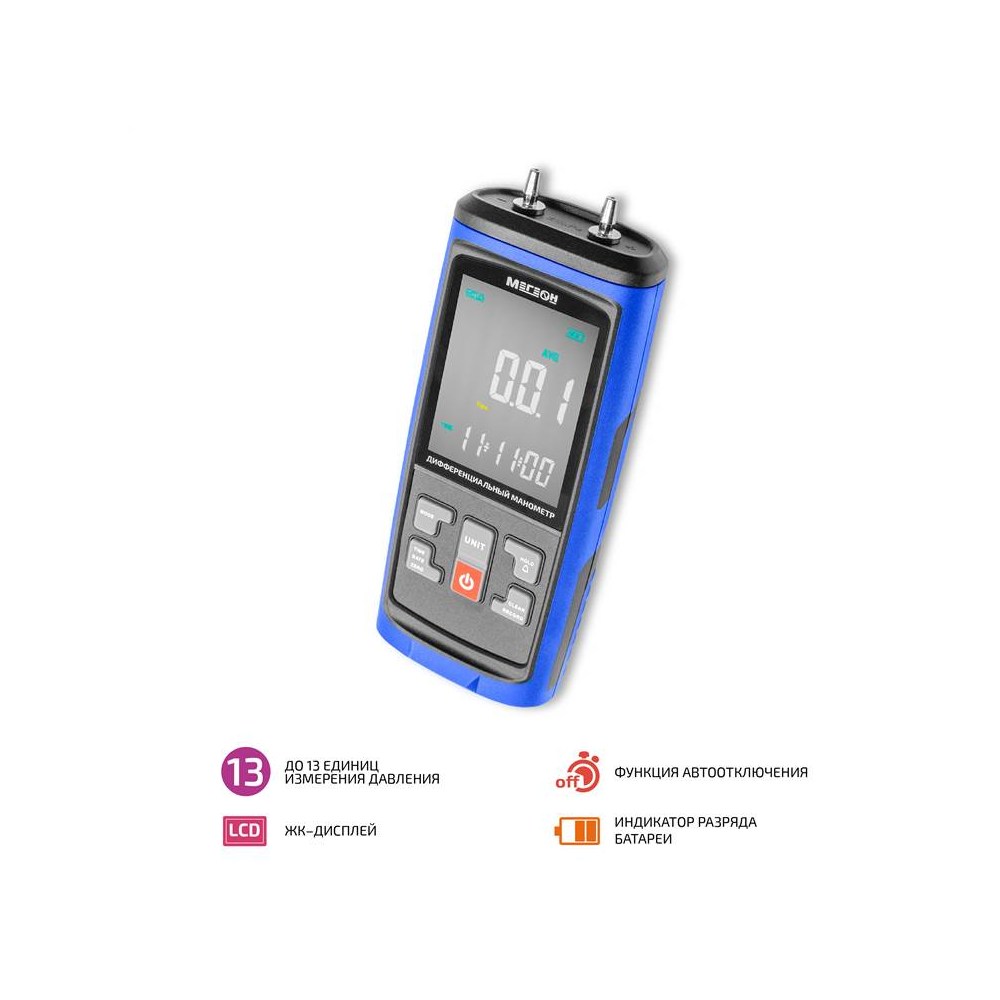 Прибор серии МЕГЕОН 5100Х - это цифровой дифференциальный манометр, предназначенный для измерения избыточного, пониженного и дифференциального давлений. Фиксация максимального, минимального и среднего значений и функция удержания данных значительно облегчат выполнение измерений. Возможность подключения к компьютеру позволяет выгрузить данные на ПК и проводить измерения с регистрацией в режиме реального времени. Прибор позволяет измерять давление в разных единицах. Изделия МЕГЕОН выгодно отличаются от существующих аналогов широкими функциональными возможностями и могут применяться для измерения расхода газов, контроль загрязненности фильтров и измерения избыточного давления в чистых помещения. Приведенный перечень далеко неполный. Функциональность по достоинству оценят как начинающие пользователи, так и профессионалы.