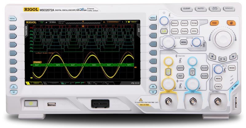 Осциллограф смешанных сигналов: 2 аналоговых канала + 16 цифровых.