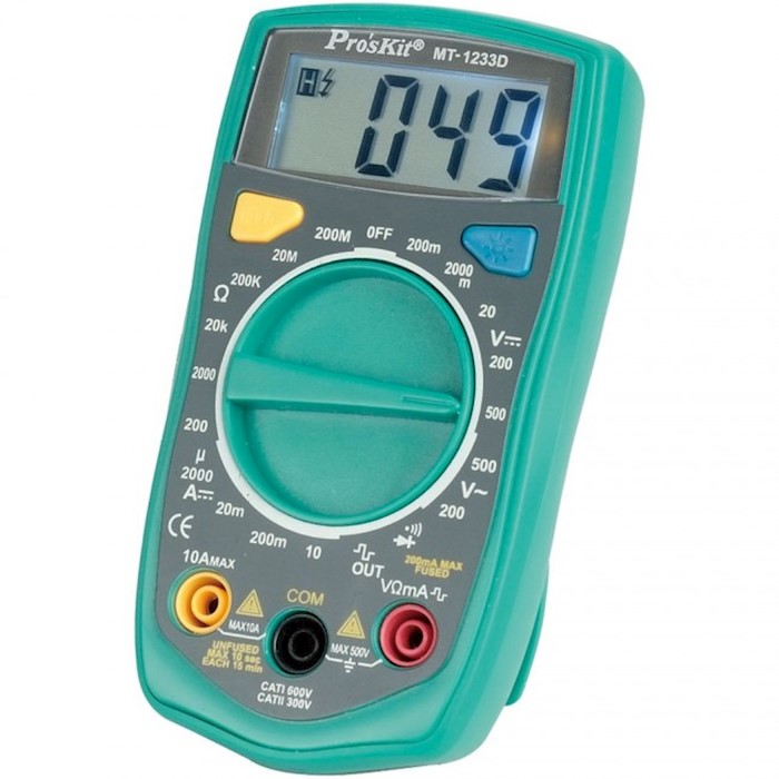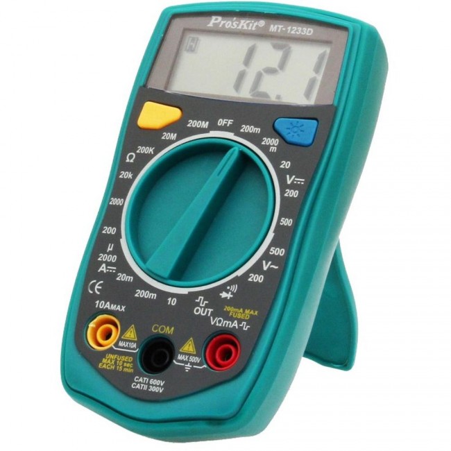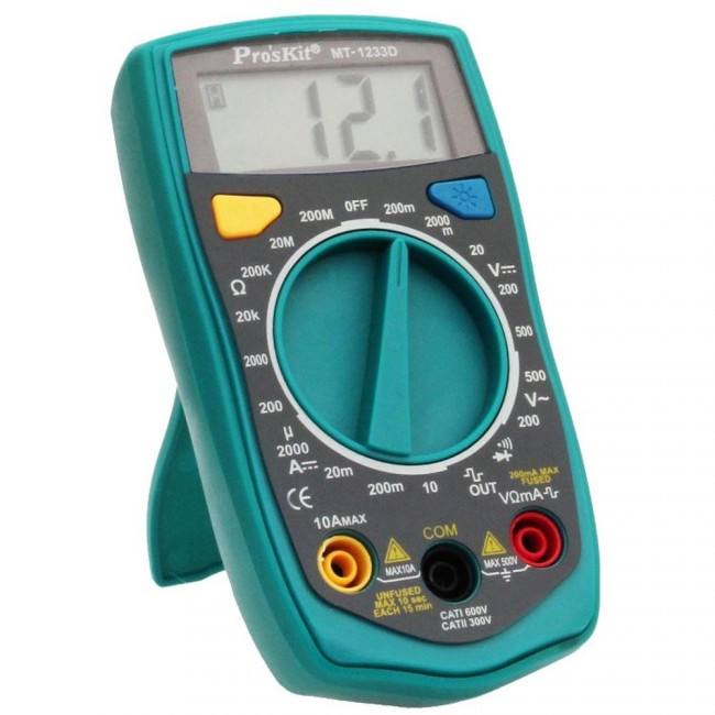 Мультиметр ProsKit MT-1233D подходит для измерения напряжения, постоянного тока и сопротивления, также имеет функции прозвонки и проверки диодов. Соответствует новейшим стандартам CE безопасности.