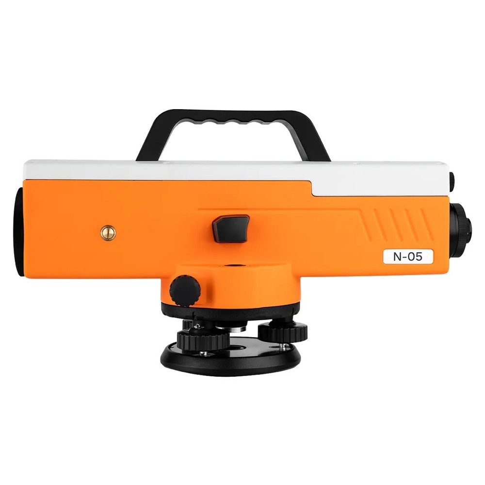 Яркая расцветка в контрастных цветах делает высокоточный оптический нивелир RGK N-05 хорошо заметным, что минимизирует риск его случайного повреждения. Светлое покрытие верхней части корпуса способствует меньшему нагреву поверхности измерителя на ярком солнце. Для комфортной переноски изделия в пределах рабочей площадки и установки на штатив служит продольная ручка, закрепленная на верхней части корпуса. Отдельная кнопка позволяет контролировать работоспособность и исправность компенсатора, не допуская получения недостоверных показаний из-за эффекта "залипания".