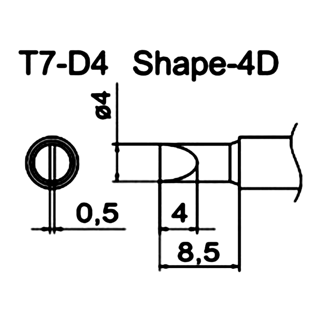 Наконечник (жало) T7-D4 для паяльников Hakko FM-2021, FM-2027 (паяльная станция Hakko FM-202).