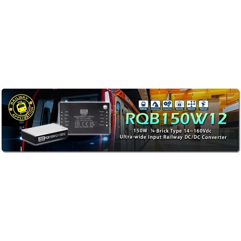 Серия RQB150W12 – это надежный модульный DC-DC-преобразователь мощностью 150 Вт для железнодорожного транспорта в корпусе типа «Quarter-brick».
