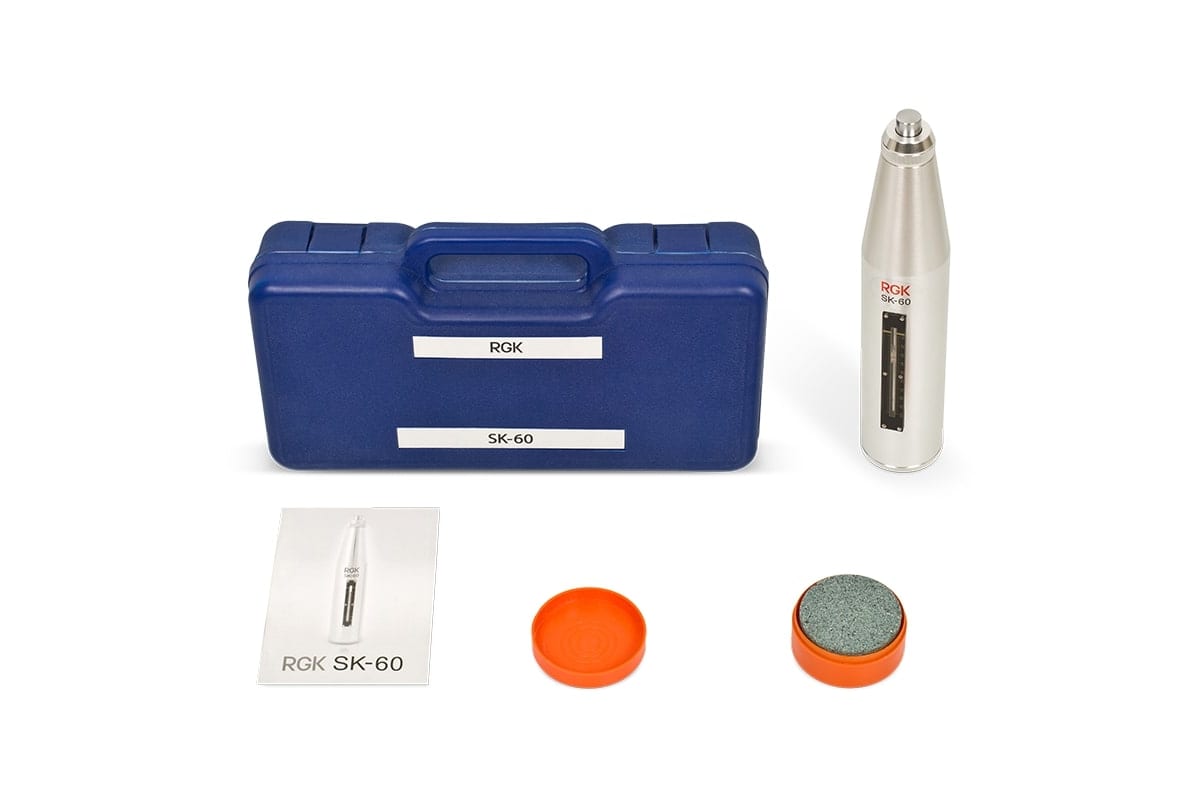 Склерометр RGK SK-60 предназначен для определения прочности на сжатие строительных материалов (бетона, камня и т.д.) в диапазоне 10-60 Мпа по ГОСТ 22690.