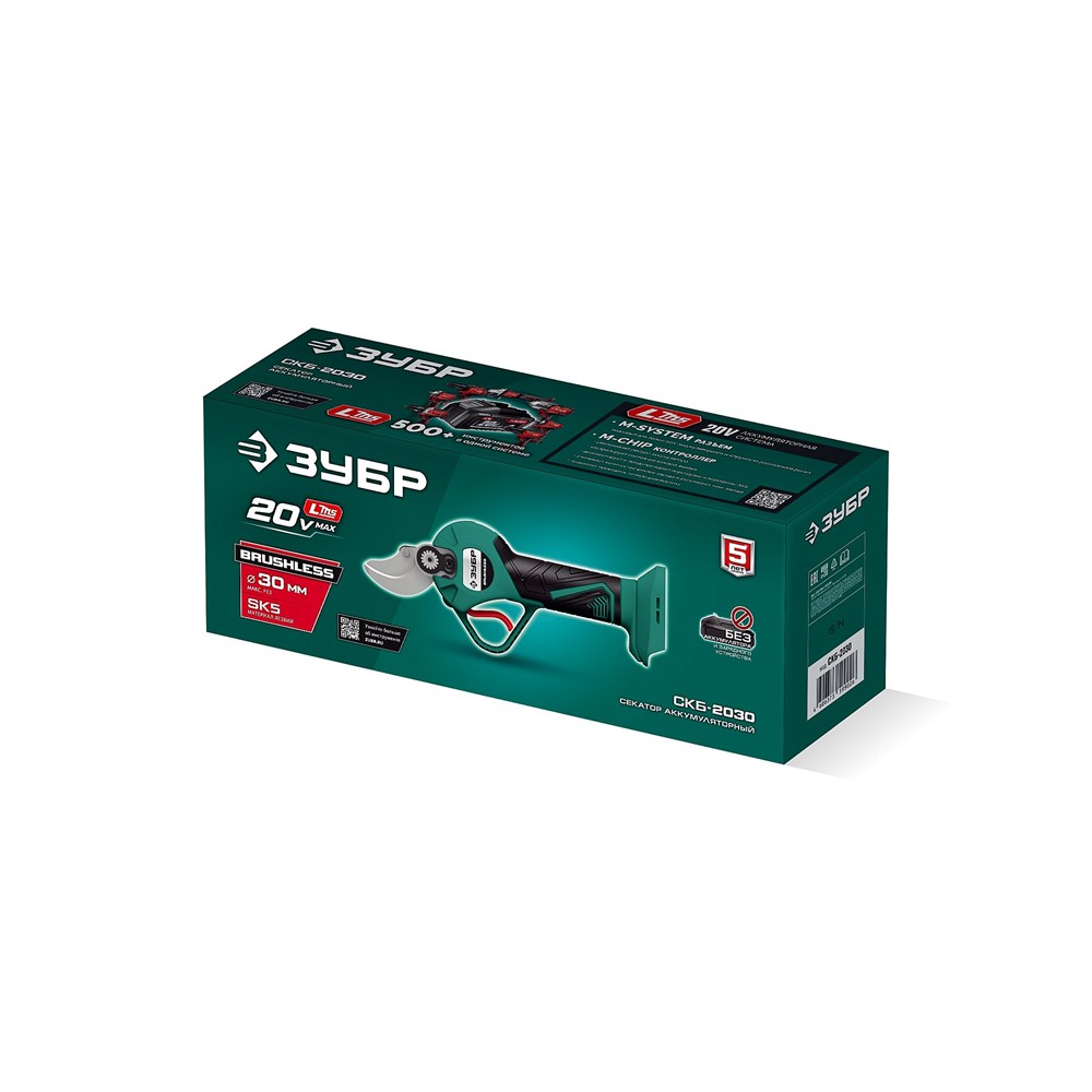 ЗУБР 20 В, 30 мм макс. рез, без АКБ (LMS), секатор аккумуляторный (СКБ-2030)