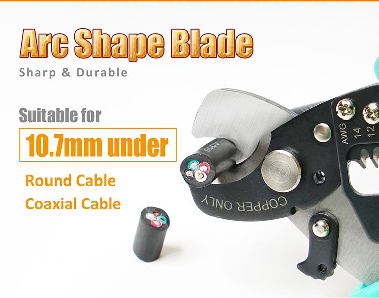 Идеально подходит для резки многожильных круглых кабелей диаметром до 10,7 мм (0,42 дюйма) и зачистки проводов.