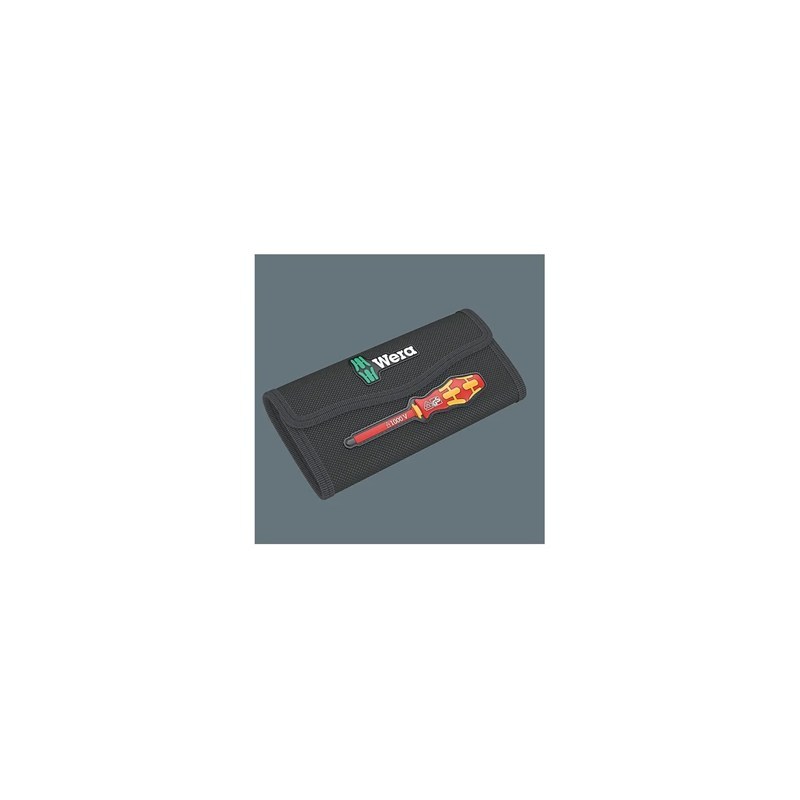 1 ручка-держатель 817 VDE Kraftform, 12 сменных отвёрток VDE с идентификатором инструментов Take it easy: цветовая кодировка профиля и лазерная гравировка размера для простого и быстрого отбора нужного инструмента, 4 ключа для распределительных шкафов, 1 однополюсный тестер фазного напряжения. Инструменты проверены поштучно по стандарту IEC 60900. Поштучная проверка под напряжением 10000 В для безопасной работы на оборудовании с допустимым напряжением 1000 В. В добротной поясной сумке. Мягкая сумка имеет с обратной стороны зону на липучках. Используя прилагаемые полоски-липучки, такую сумку можно крепить к компонентам системы Wera 2go. А можно к стене, полке и инструментальной тележке. |